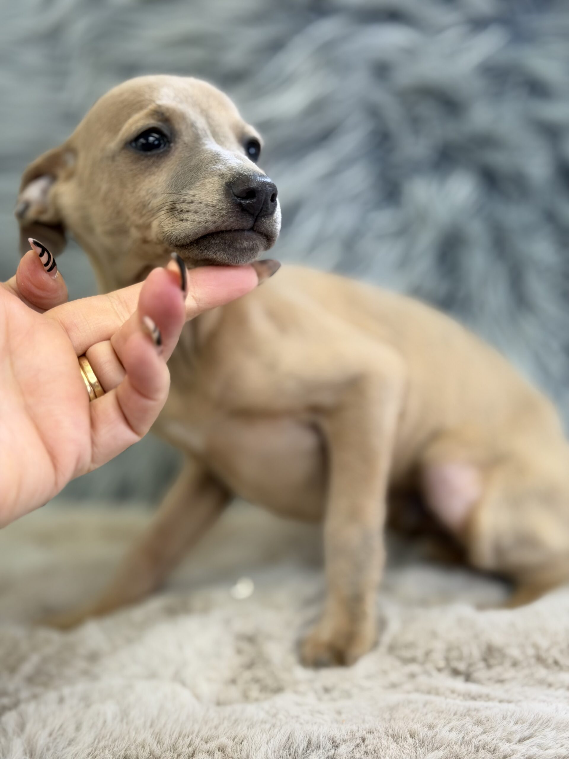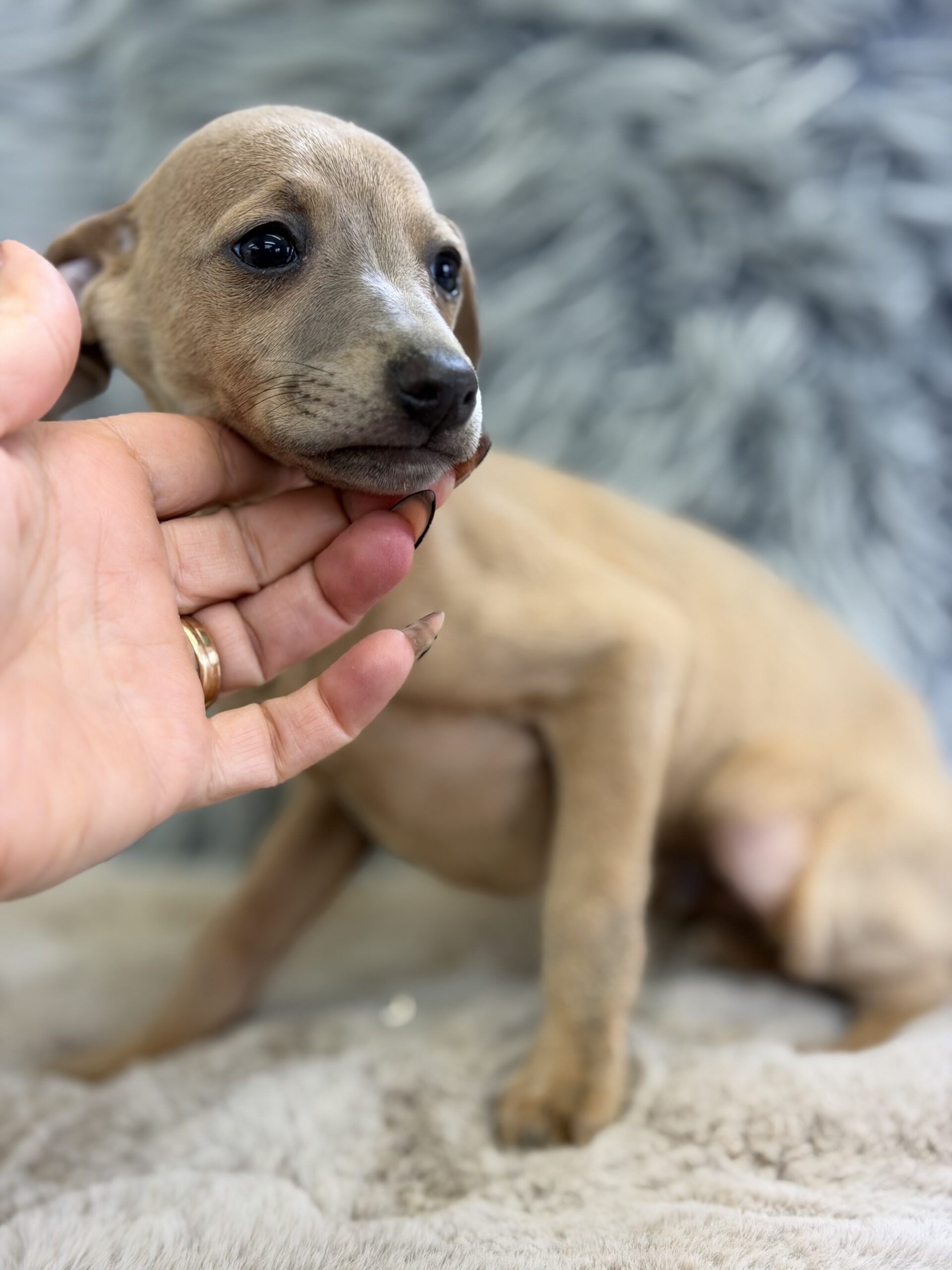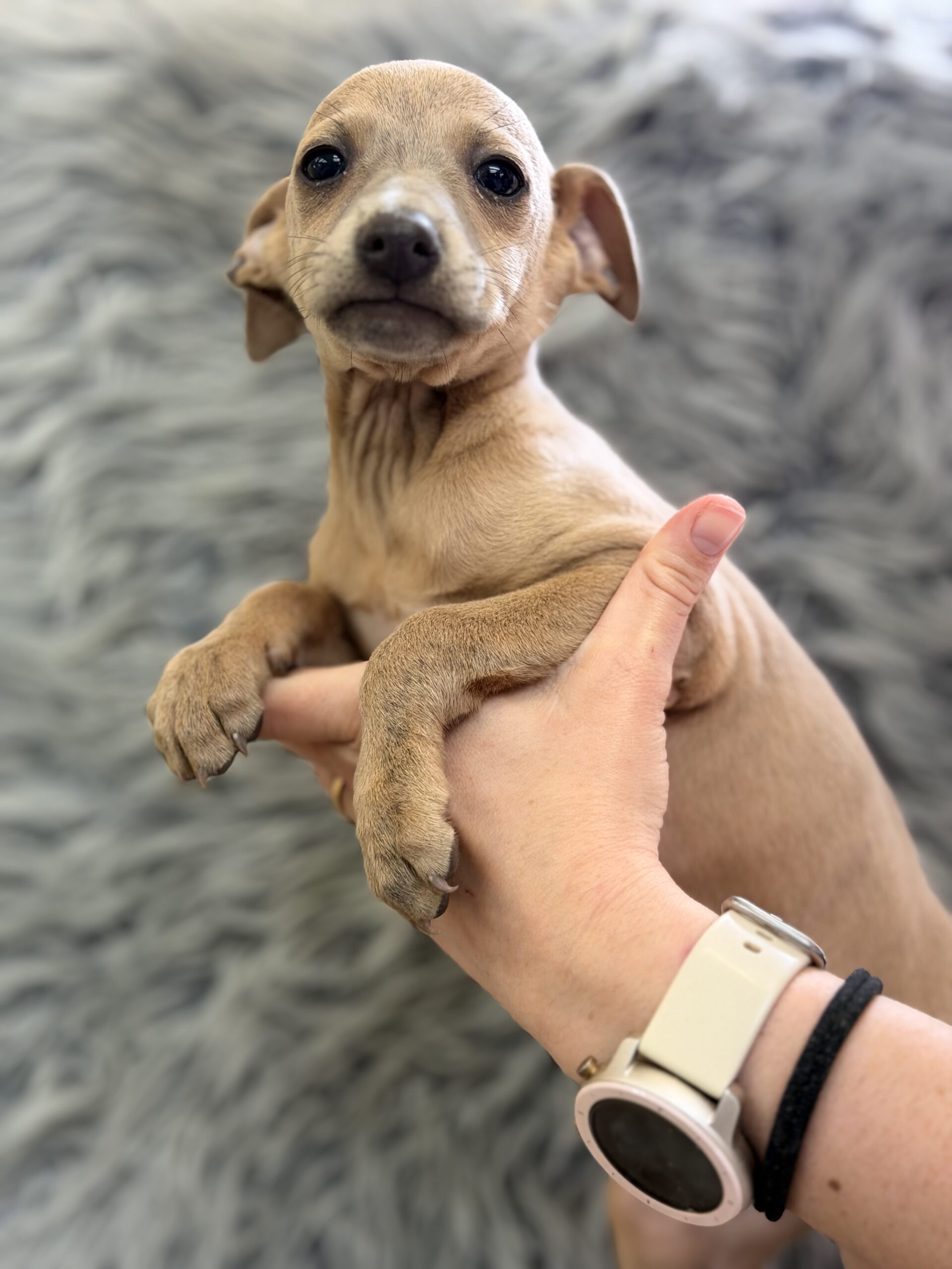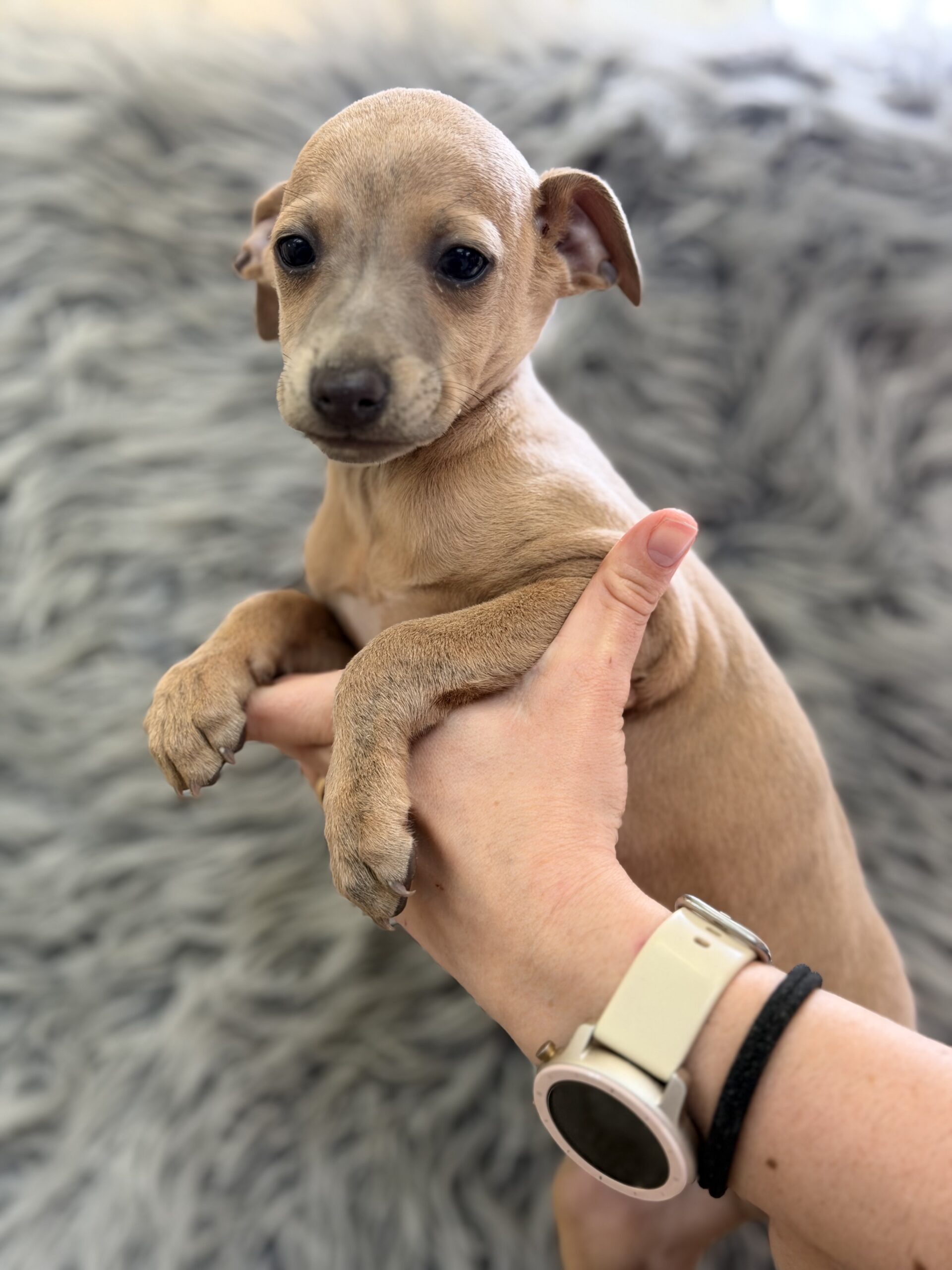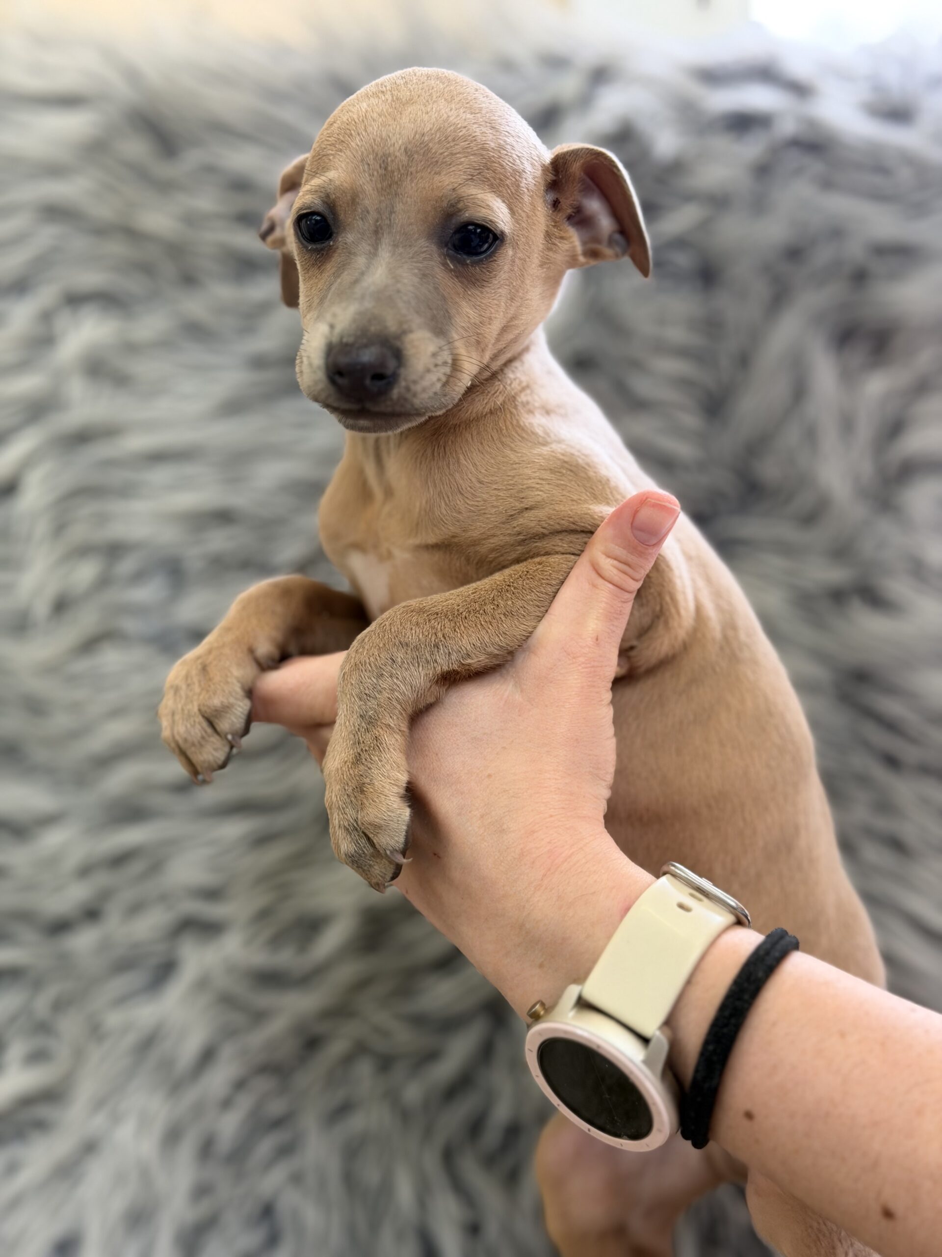 Increíble y diminuto  galgo  Piccolo italiano color Isabella.