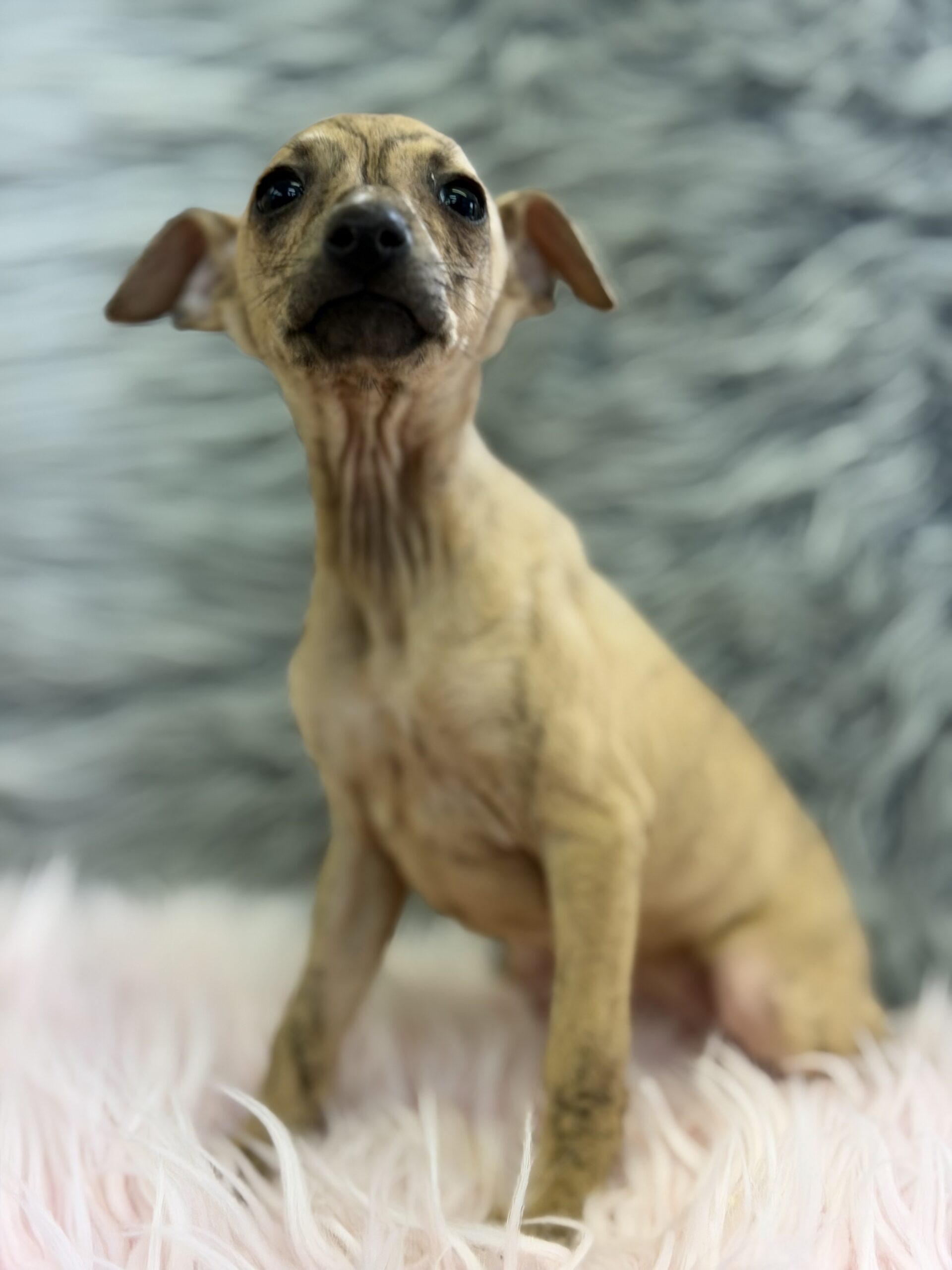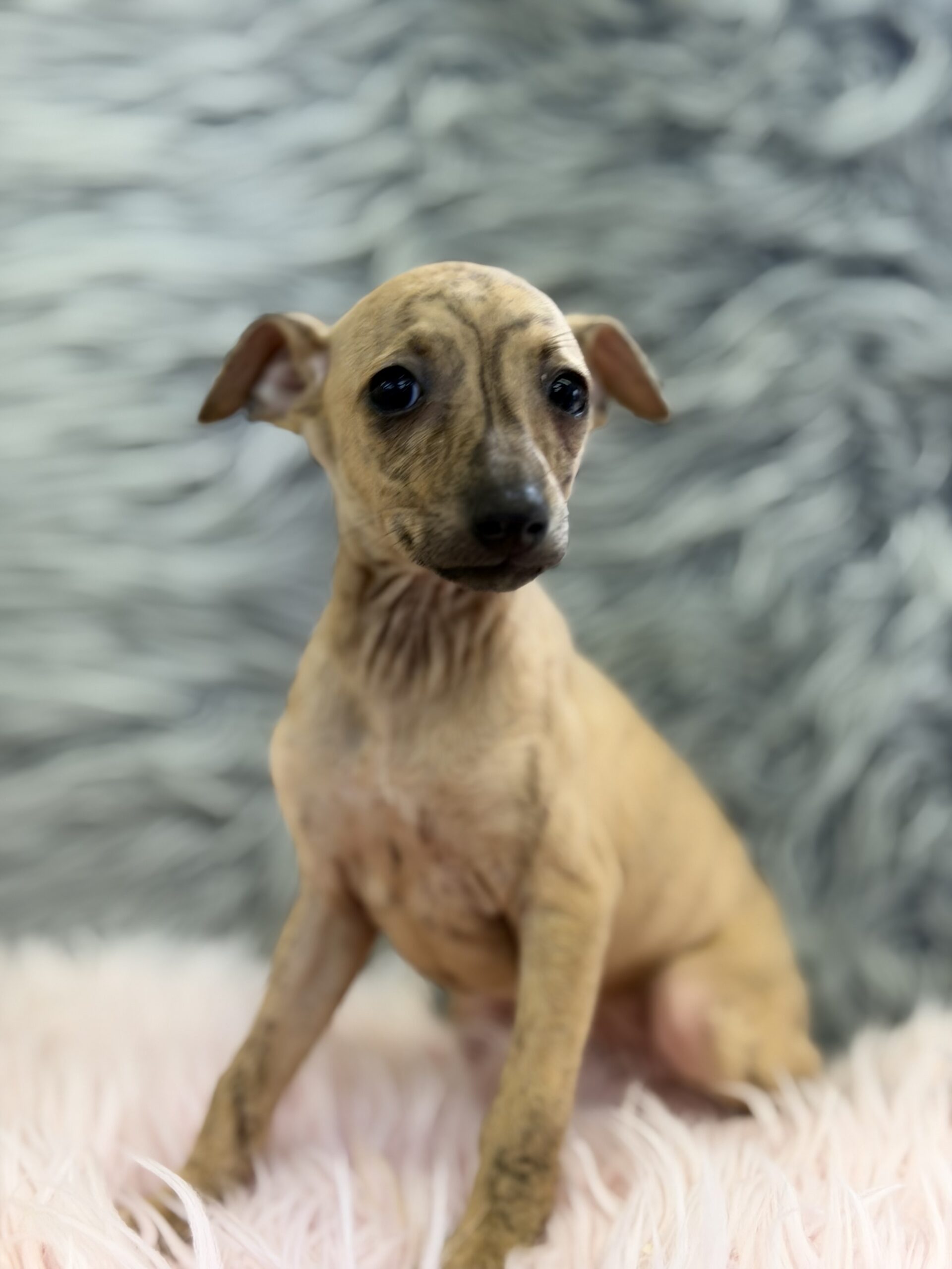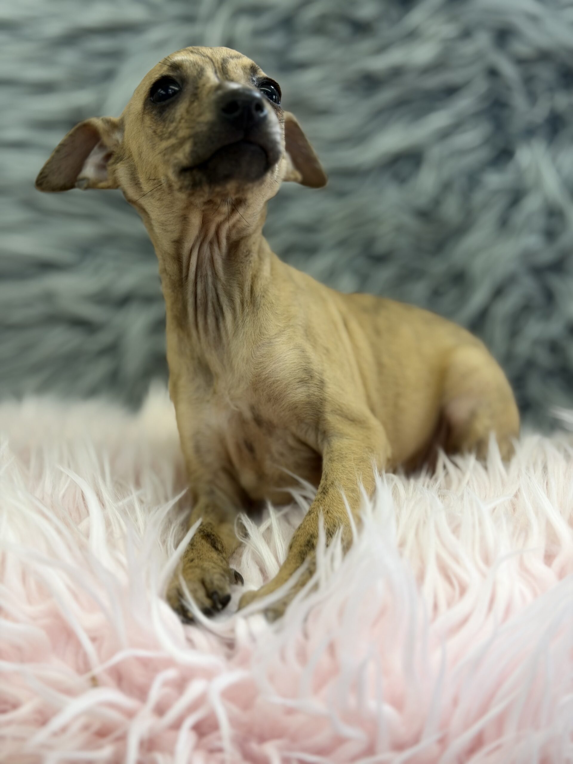 Increíble y diminuta  hembra Piccolo italiano color Isabella atigrada .